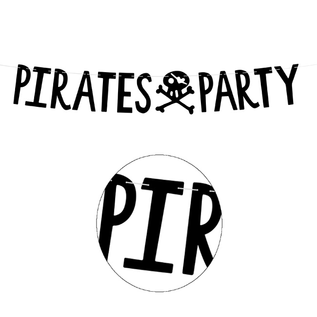 Incroyable guirlande avec une enseigne en anglais "pirates party". Vous pourrez la combiner avec le fanion rouge et noir - 2,00 m que vous trouverez également sur le site. Vous réussirez à captiver l'attention de tous les membres de l'équipage de la fête !