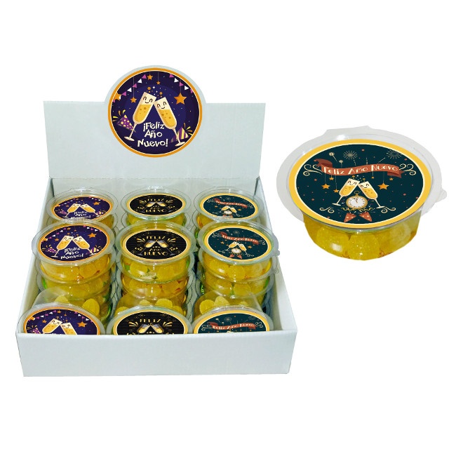 Mini pot de bonbons gélifiés que vous pourrez échanger contre les raisins du Nouvel An.