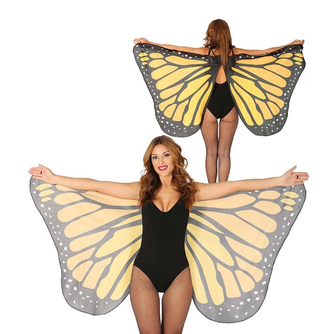 De magnifiques ailes en tissu avec un motif dans les tons orangés qui recrée à la perfection le dessin des ailes de papillon.