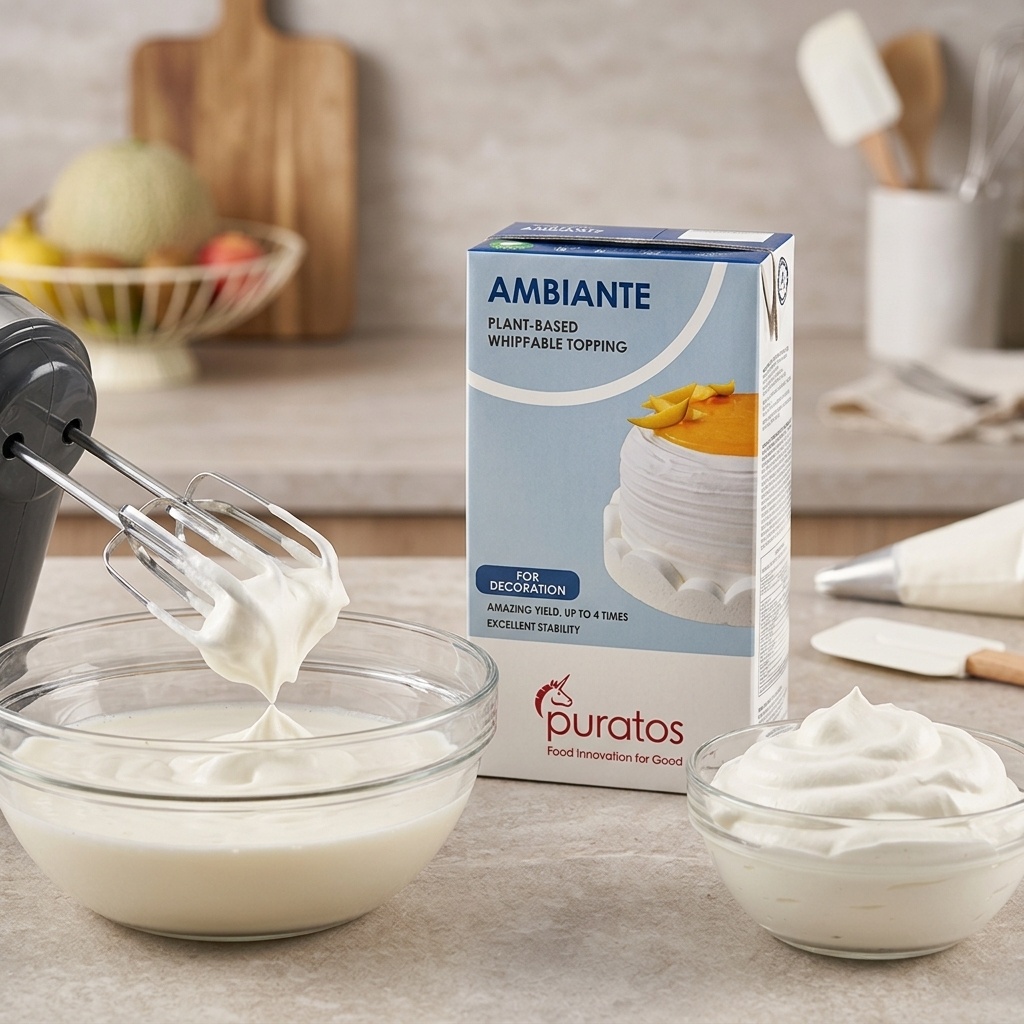 - Incorpore une grande quantité d'air et la retient, 1 l de Ambiante donne 3,7 l de crème fouettée.