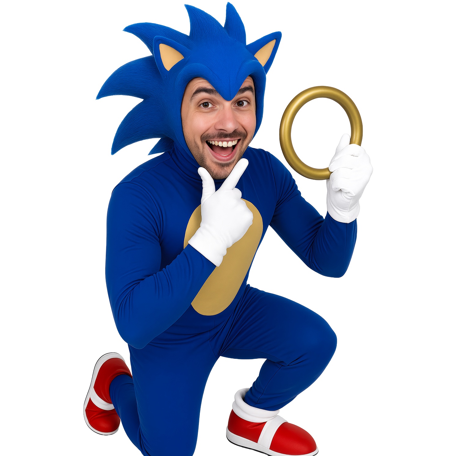 Ensemble de 3 anneaux dorés inspirés de Sonic, idéal comme complément de déguisement, accessoire pour photocalls ou pour jeux à thème.