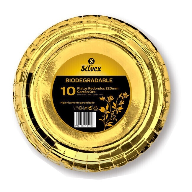 Assiettes métalliques en carton de 22 cm - 10 unités