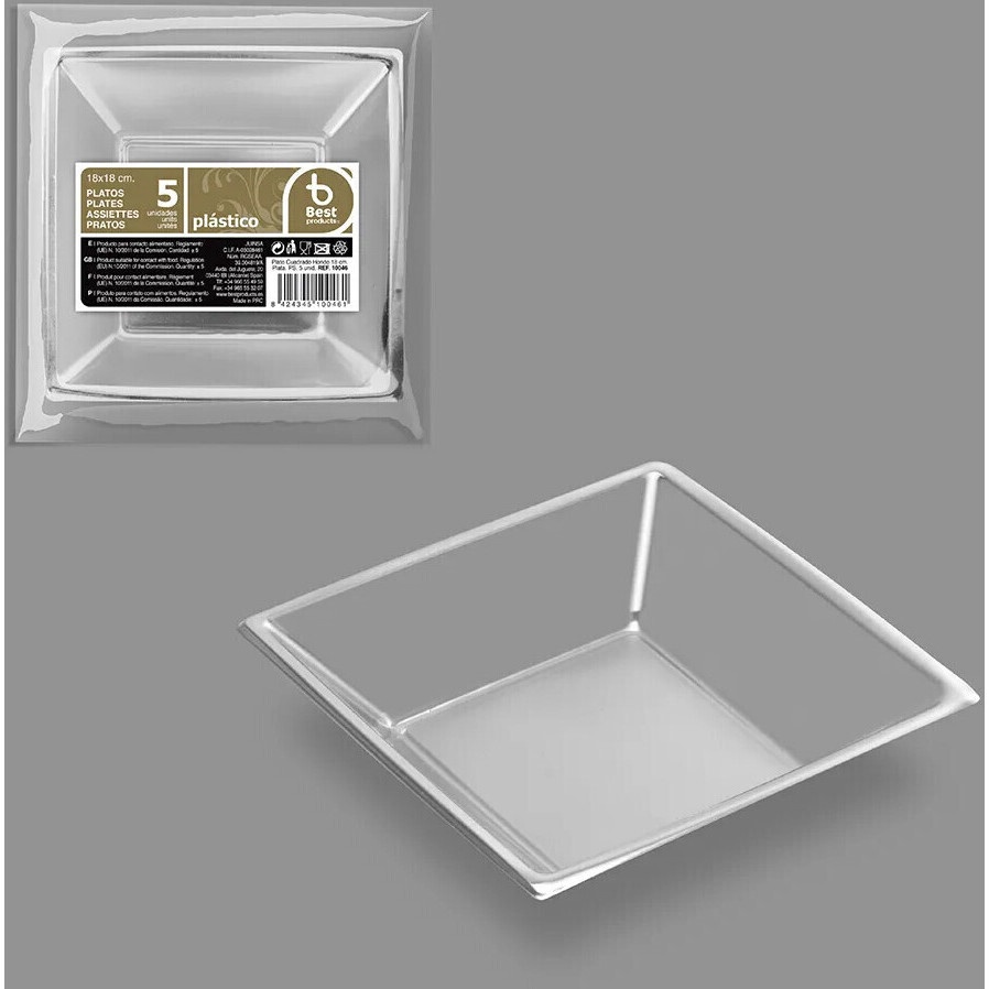 Assiettes creuses en plastique argentées de 18 cm - 5 unités