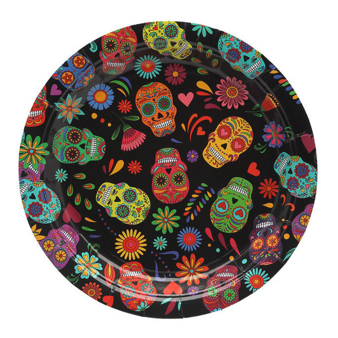 Assiettes de crâne mexicain de 23 cm - 6 unités