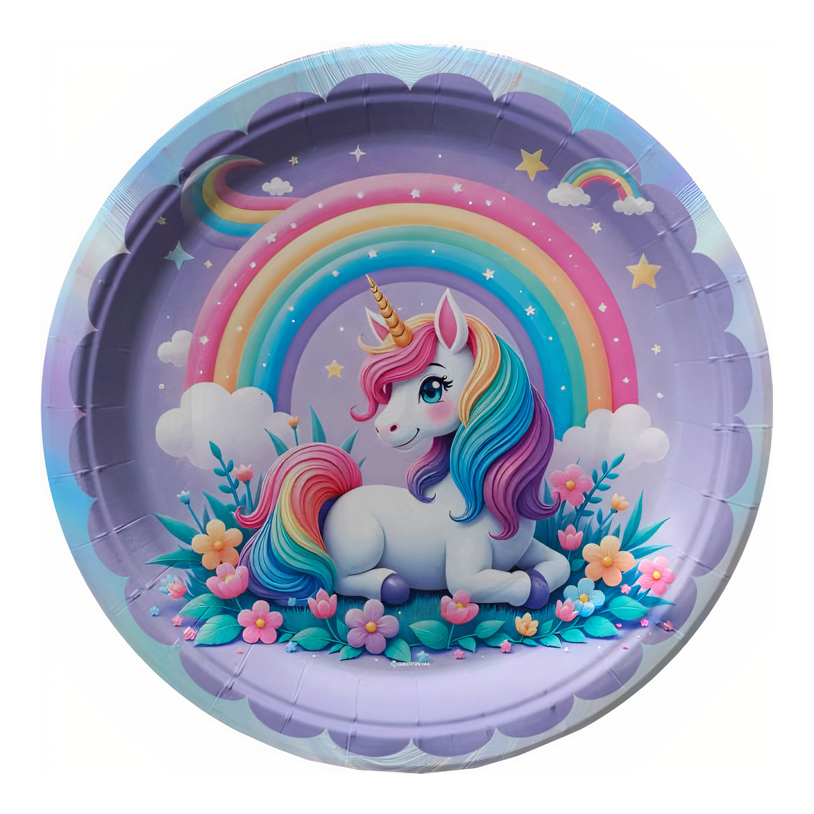 Assiettes Licorne lilas enchantée de 18 cm - lot de 8