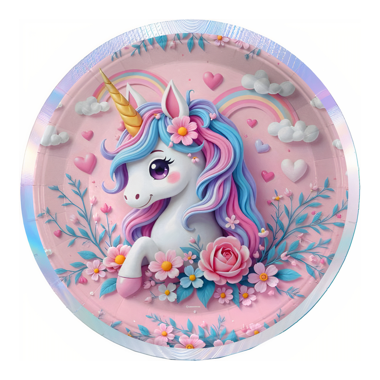 Apportez une touche féerique à vos fêtes avec ces assiettes en carton au motif licorne, idéales pour anniversaires et événements pour enfants.
