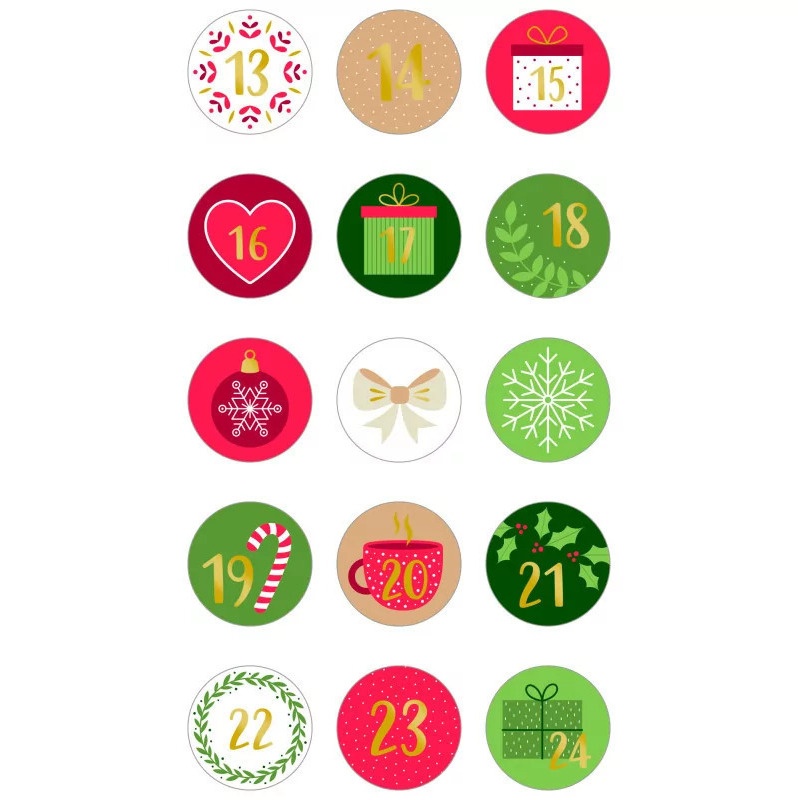 Autocollants numériques pour calendrier de l'Avent - 60 unités