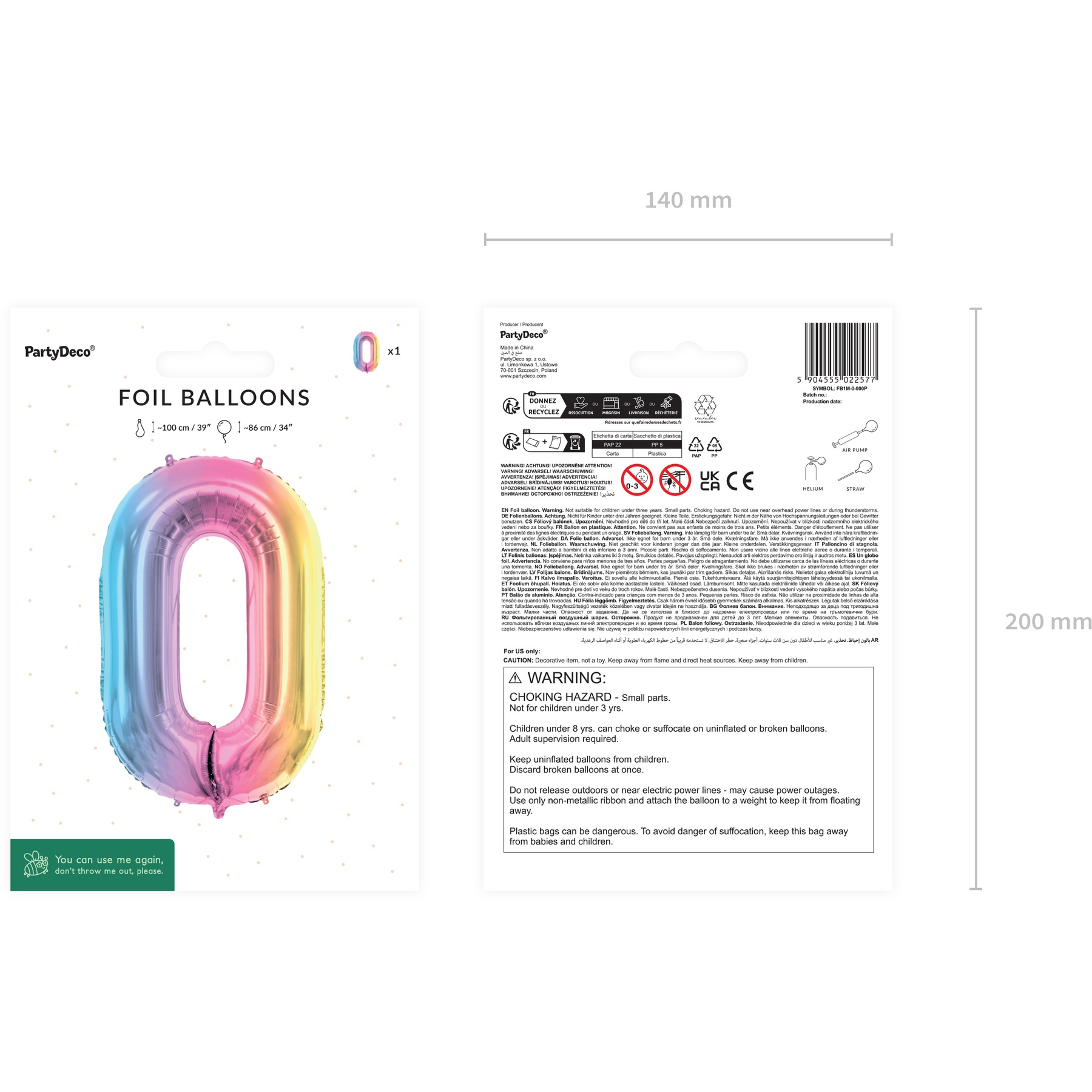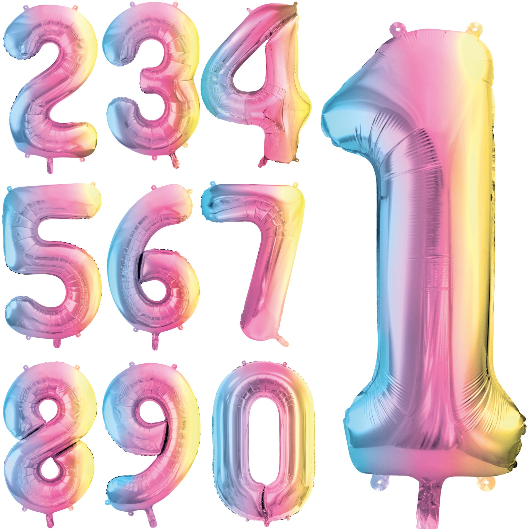 Ballon chiffre arc-en-ciel pastel de 86 cm - PartyDeco - 1 unité