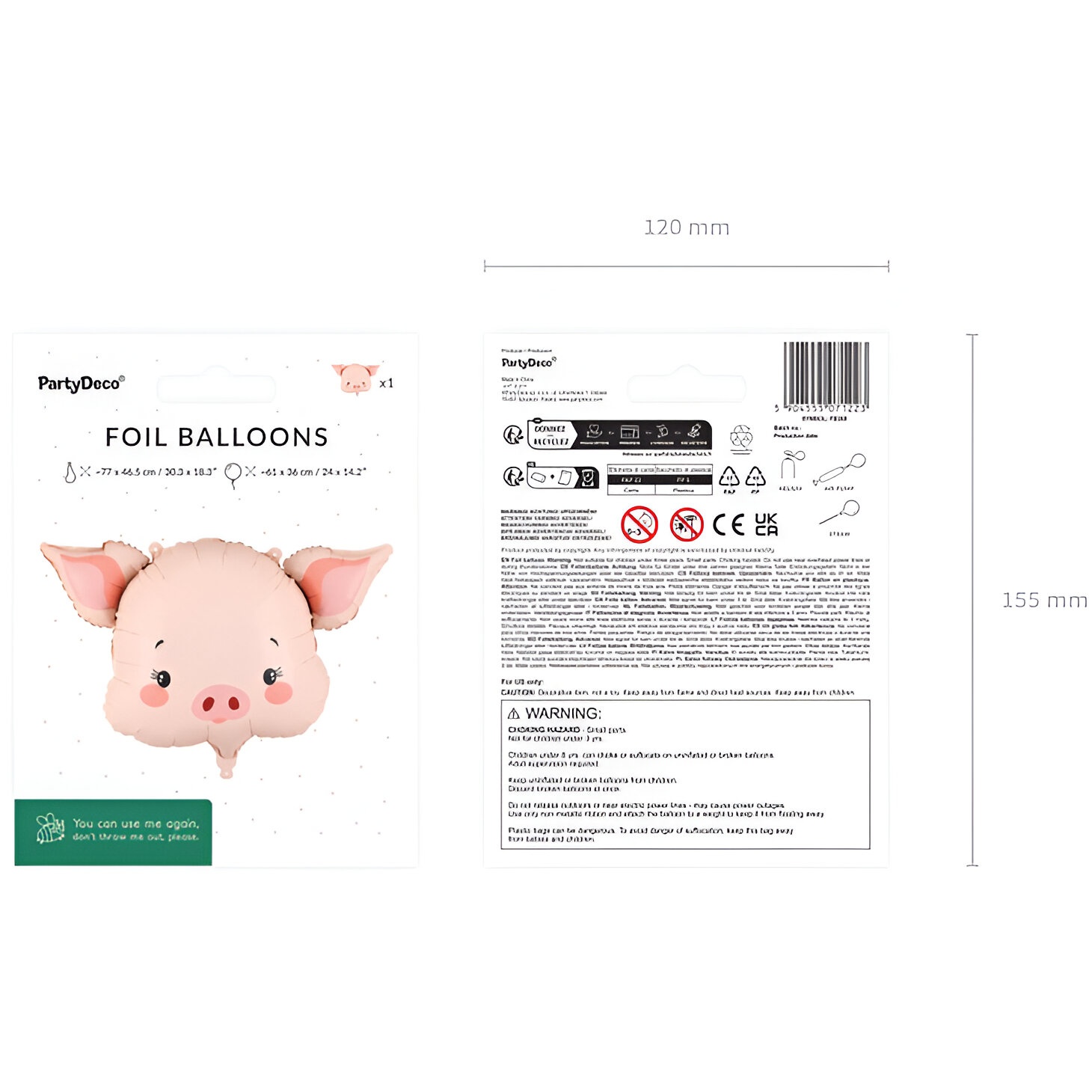 Ballon en mylar officiel Peppa Pig, de couleur rose, avec le visage emblématique du personnage. Dimensions à plat (non gonflé) env. 77 x 46,5 cm ; dimensions une fois gonflé env. 61 x 36 cm. Convient pour un gonflage à l'air ou à l'hélium, parfait pour décorer vos événements pour enfants et apporter une touche ludique et reconnaissable à tout espace. Le set comprend une paille pour faciliter le gonflage.