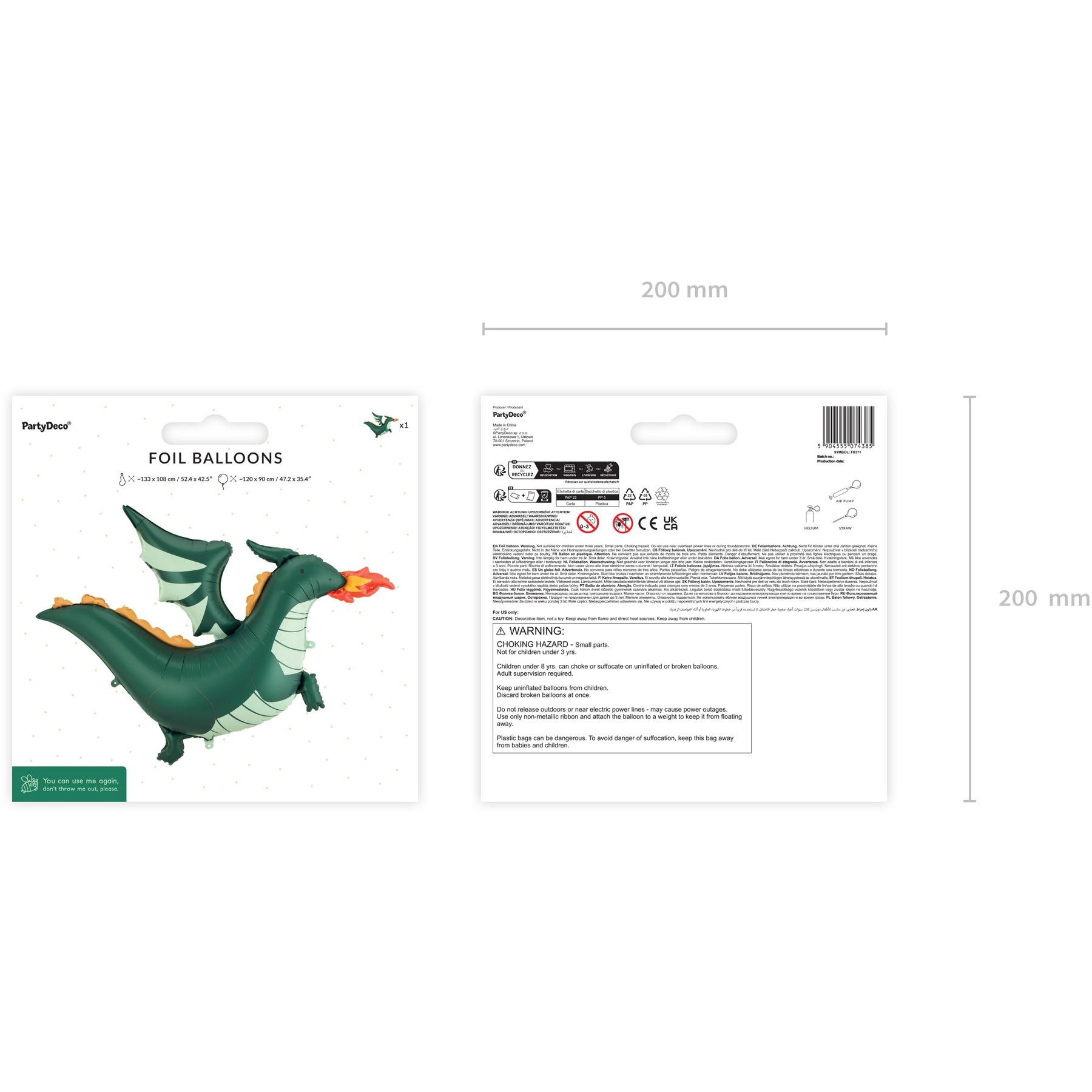 Dimensions avant gonflage: env. 133 x 108 cm ; une fois gonflé: env. 120 x 90 cm. Convient pour gonflage à l'air et à l'hélium, ce qui permet de l'utiliser en élément flottant ou fixe dans votre décoration.