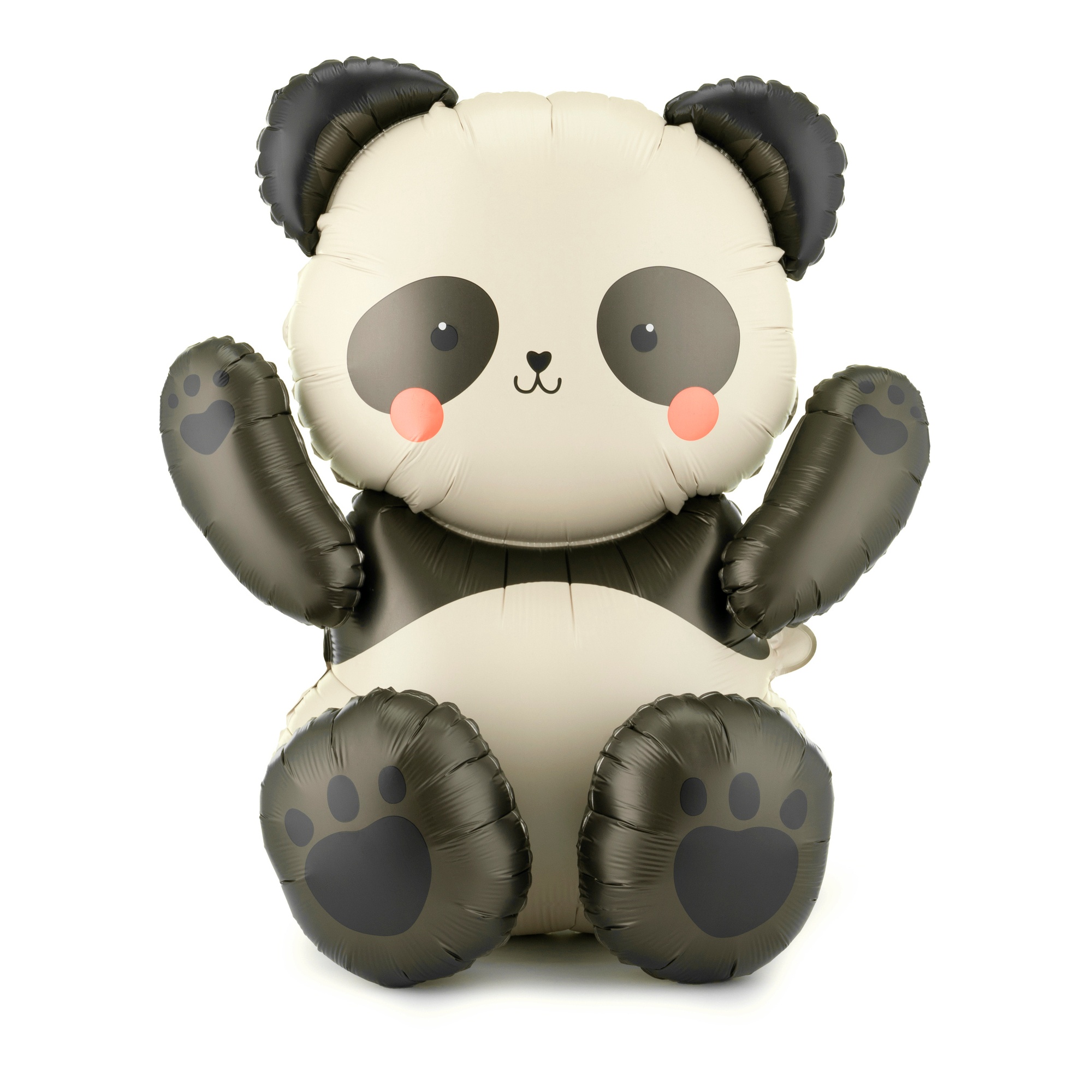 Ballon en mylar (foil) en forme de panda, tons beige et noir, au design tendre et très visible.