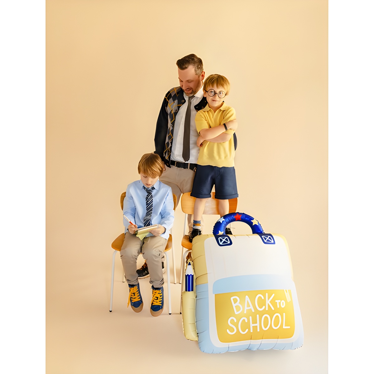 Ballon en mylar en forme de sac à dos portant l'inscription « Back to School » en tons crème et jaune. Il apporte une touche ludique et thématique à vos célébrations scolaires et fêtes enfantines. Son design attrayant et son volume visible rehaussent tout montage décoratif. Équipé d'une fermeture auto-scellante et d'oeillets, il se fixe aisément sur des guirlandes ou des centres de table.