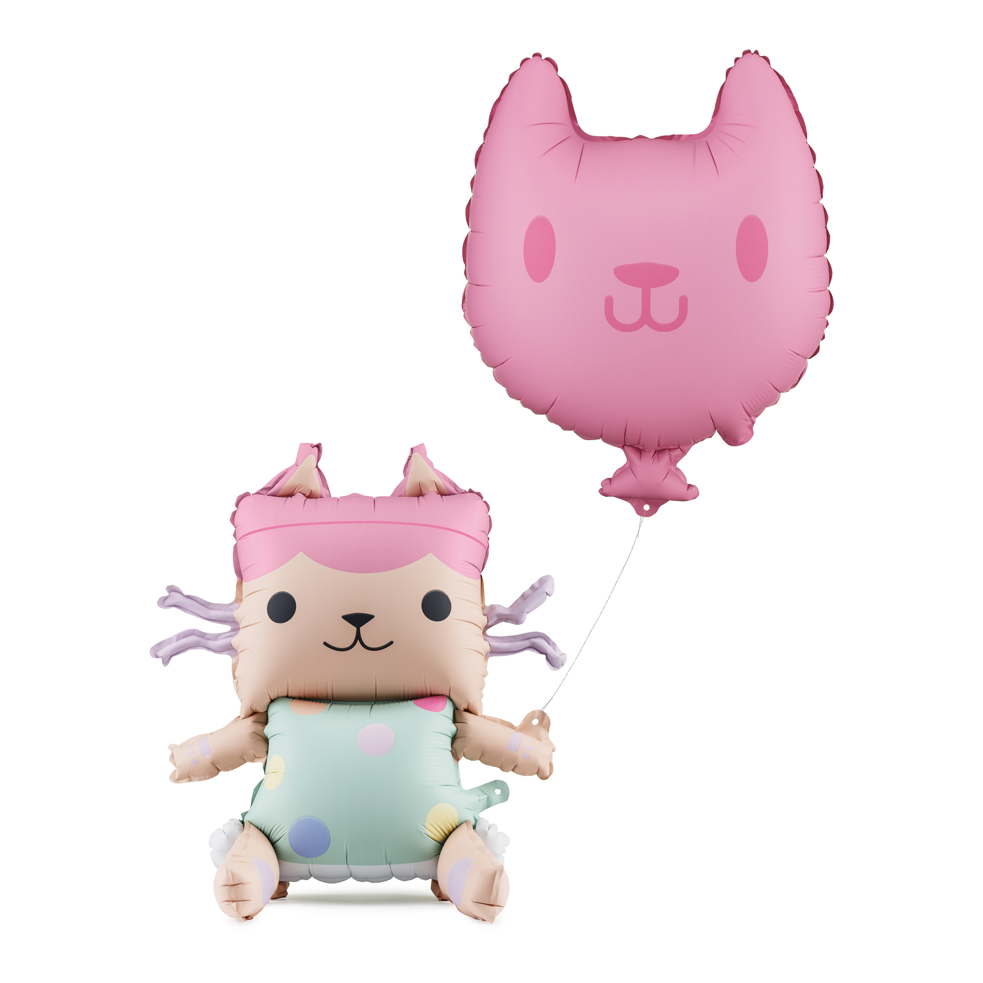 • Comprend deux ballons (baby box et chat), une corde et une paille.