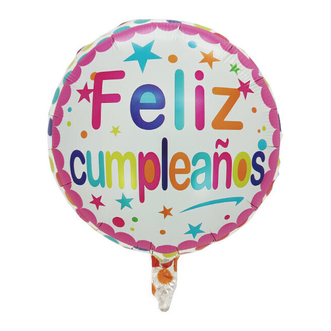 Ballon d'Anniversaire Heureux avec étoiles colorées de 45 cm