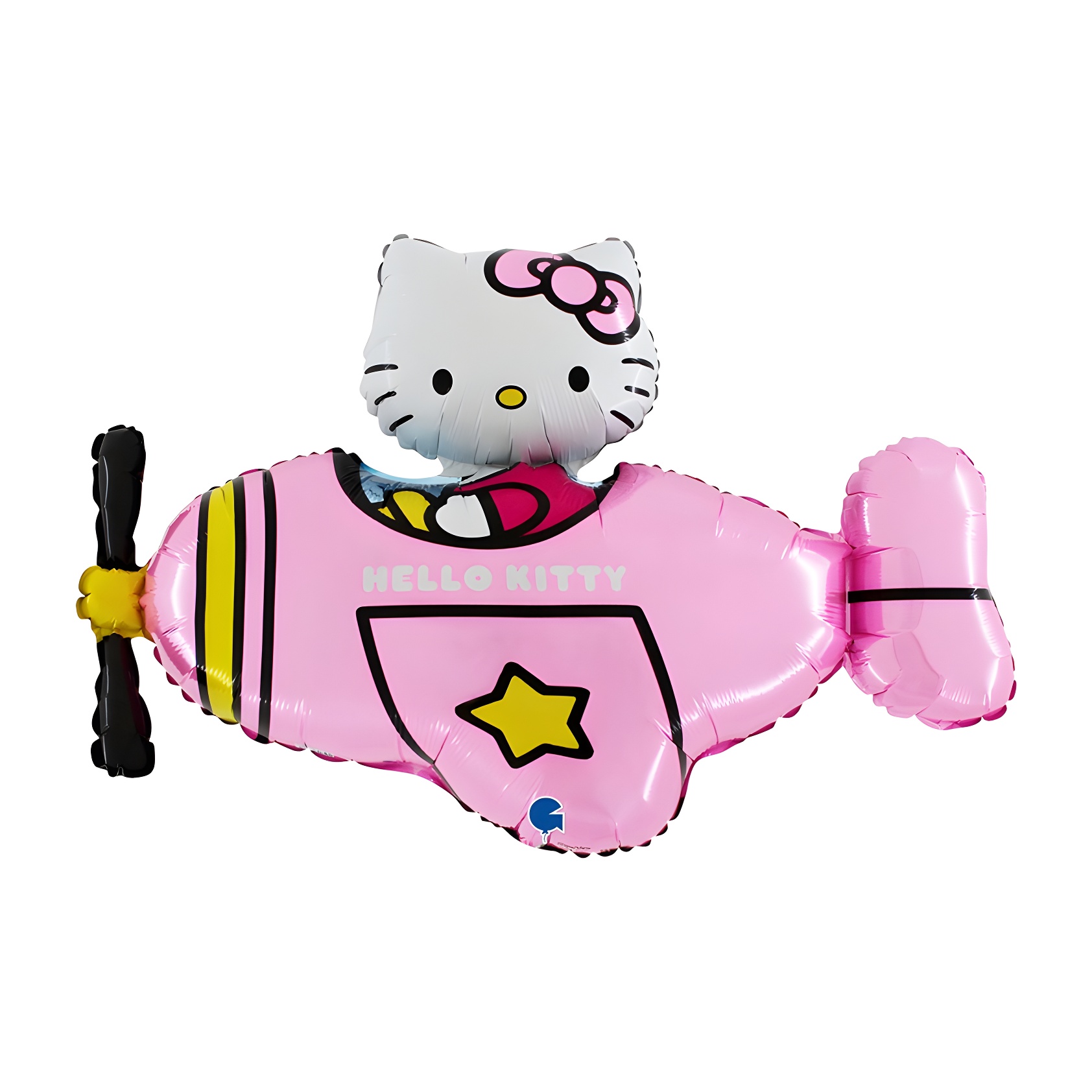 Ballon à l'effigie de l'iconique Hello Kitty, décliné en un amusant avion rose - idéal pour apporter une touche joyeuse et colorée à toute célébration enfantine.