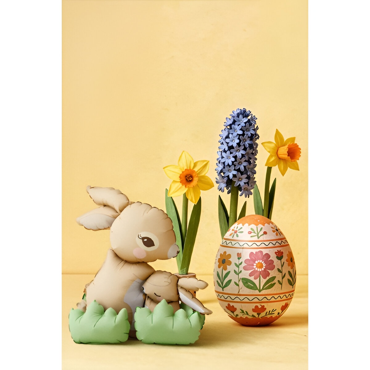 Ballon autoportant en forme de lapins dans un mélange de couleurs, conçu pour apporter une touche tendre et festive à vos célébrations. Dimensions avant gonflage env. 74,5 x 71 cm ; dimensions après gonflage env. 51 x 60 cm. À gonfler à l'air uniquement. Format autoportant qui apporte présence et charme aux tables, coins et photocalls.
