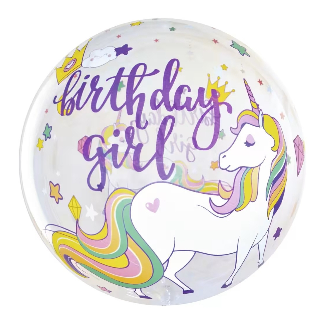 Ballon de licorne transparent « Birthday girl »
