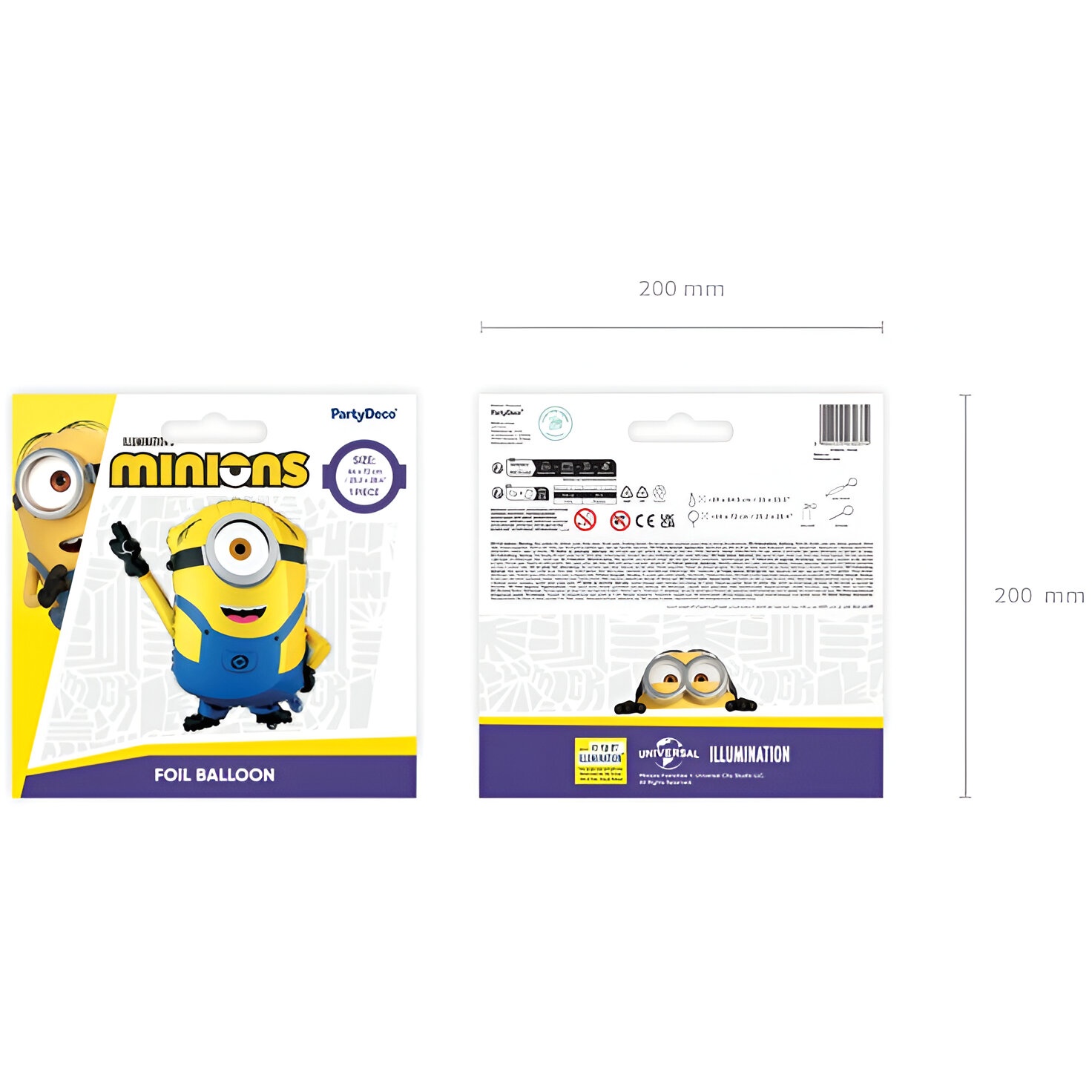 Ballon foil officiel du Minion Mel aux couleurs vives jaune et bleu. Dimensions avant gonflage: env. 89 x 84,5 cm ; dimensions après gonflage: env. 64 x 72 cm. Convient pour un gonflage à l'air ou à l'hélium, idéal pour décorer vos événements pour enfants et apporter une touche ludique. Le ballon est auto-scellant et équipé d'anneaux de suspension intégrés pour une fixation facile. Une paille d'inflation est fournie pour faciliter le gonflage.