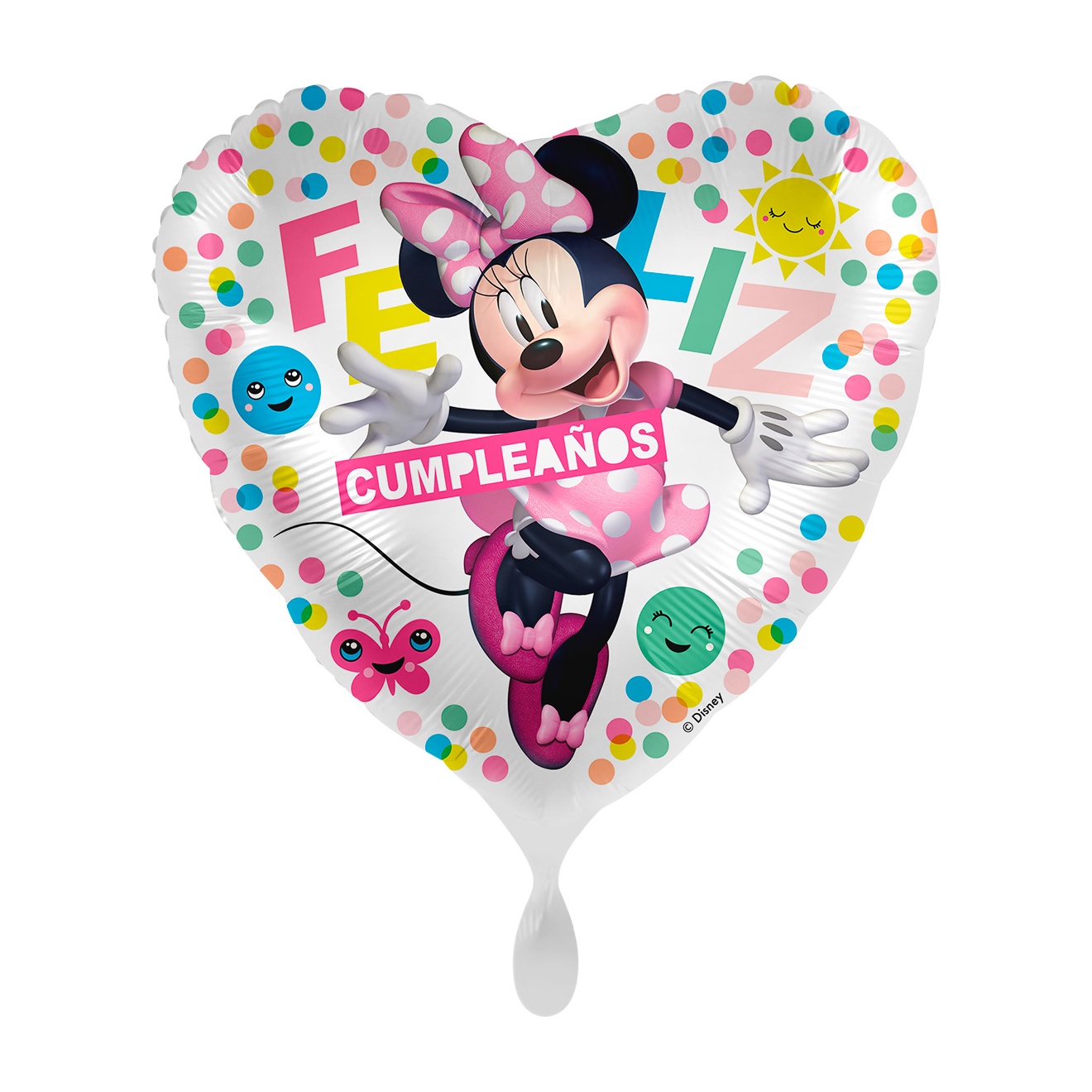 • Design officiel de Minnie Mouse avec l'inscription 'Feliz Cumpleaños' qui met en valeur vos célébrations.