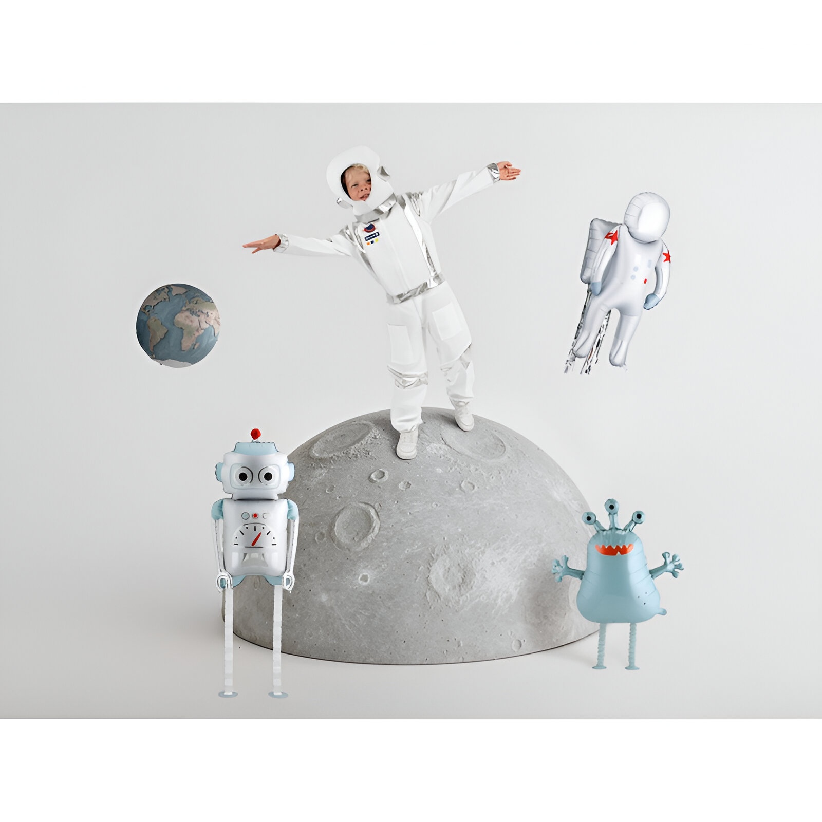 - Design accrocheur de robot aux finitions argentées et bleu clair, parfait pour les ambiances enfantines.