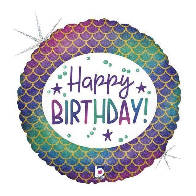 Ballon rond Joyeux Anniversaire anniversaire de sirène de 46 cm - Grabo
