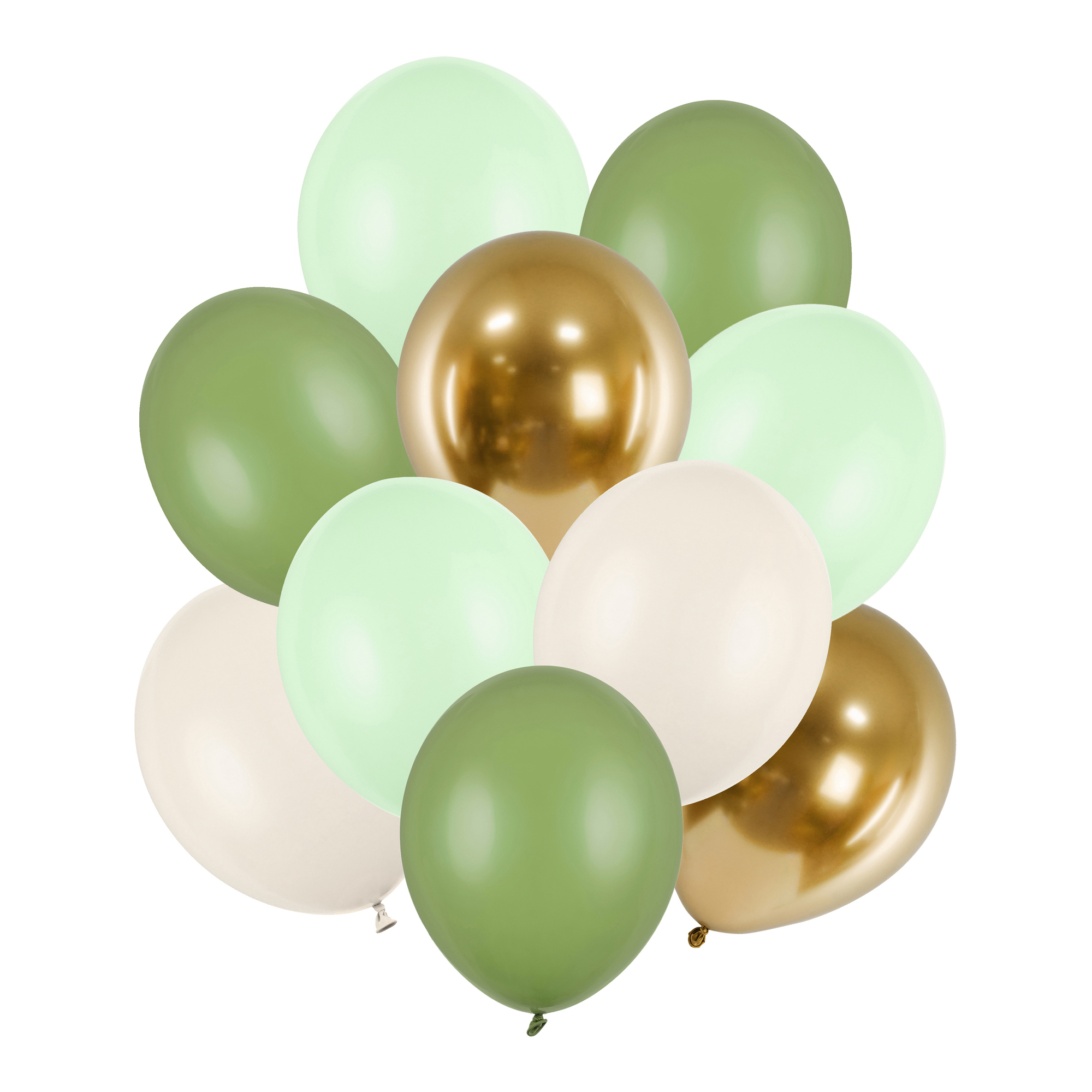 - Inclus: 3 ballons pistache, 3 ballons vert romarin pastel, 2 ballons albâtre pastel et 2 ballons or brillant
