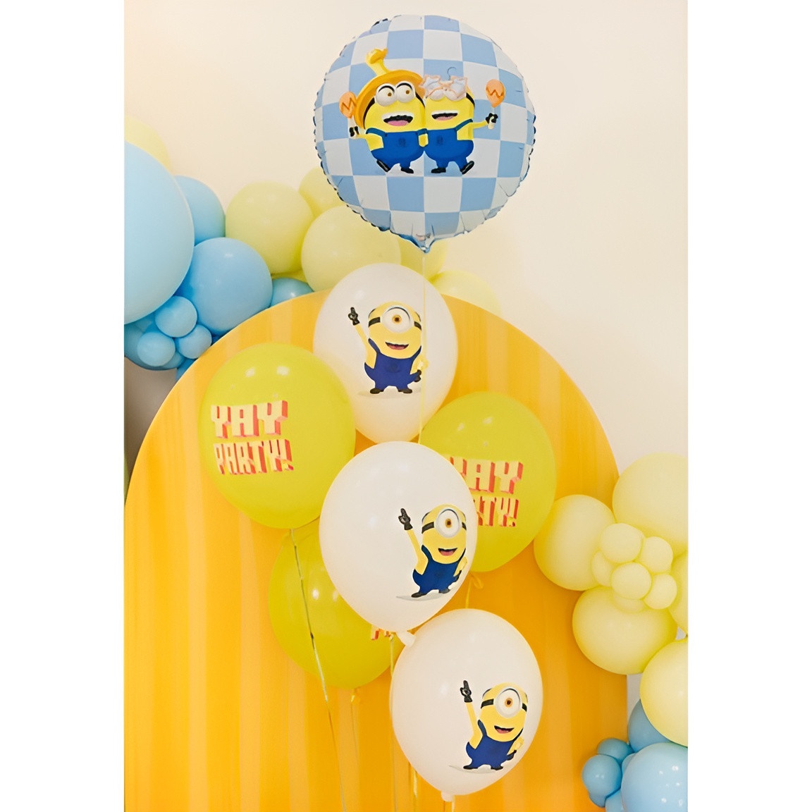 Strong Balloons Minions sont des ballons imprimés double face représentant les célèbres personnages Minions et le message "Yay Party!" en couleurs pastel. Chaque ballon atteint 30 cm de diamètre une fois gonflé, avec un motif joyeux en blanc et jaune miel qui apporte de la gaieté à toute célébration enfantine. Ils sont idéaux pour décorer vos anniversaires, composer des centres de table et aménager des espaces de fête avec une touche amusante et reconnaissable.