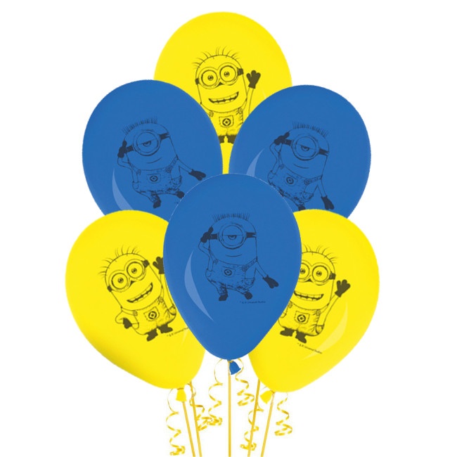 Les ballons bleus portent le dessin de Stuart et les ballons jaunes ont le personnage de Dave imprimé.