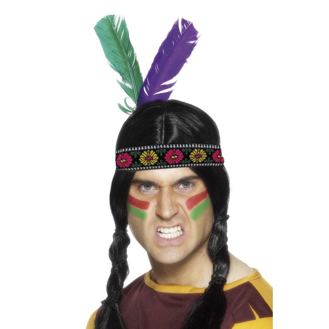 Elle a deux plumes à l'arrière, une lilas et une verte. Accessoire parfait pour compléter votre déguisement d'Indien et combattre les cow-boys.