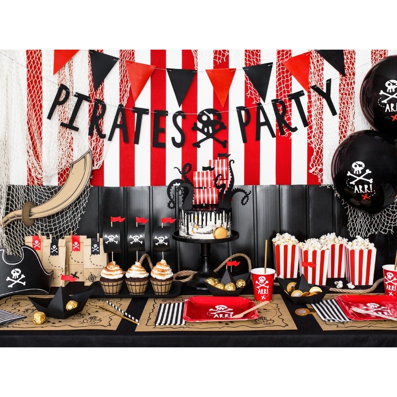 C'est un joli design qui est livré plié mais facile à monter car il est préparé et marqué pour cela. Pour plus de détails, il dispose de 6 piques avec de petits drapeaux rouges que vous pouvez planter sur le dessus. Ce sera fantastique pour votre fête.