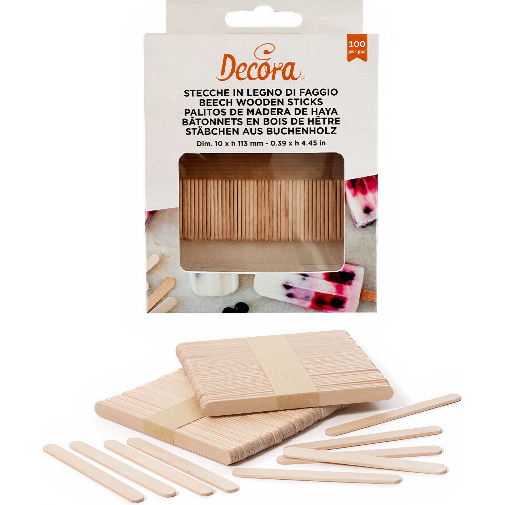 Bâtonnets en bois pour glaces de 11,3 cm - Decora - 100 unités
