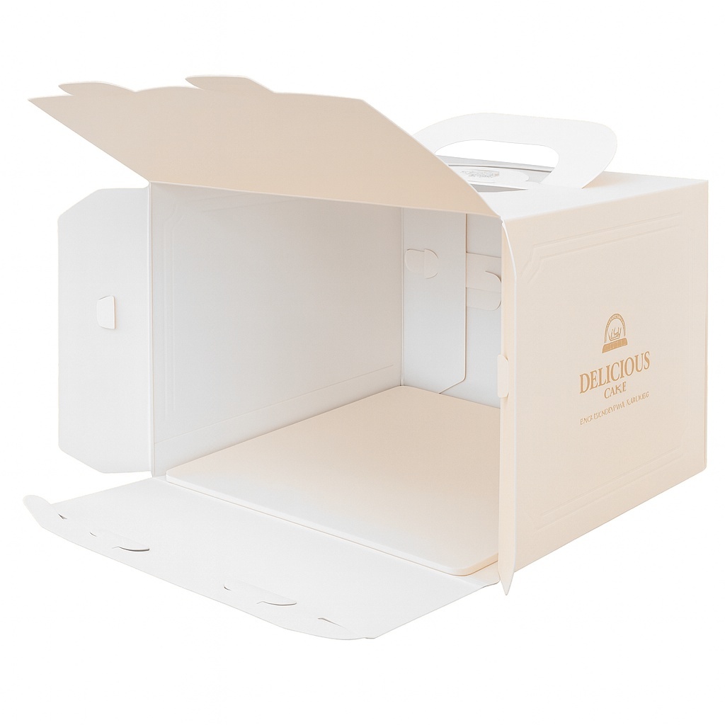 Élégante boîte en carton rigide, parfaite pour transporter et présenter vos gâteaux, pâtisseries et autres créations de pâtisserie.