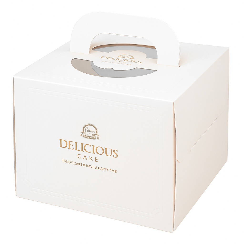 Élégante boîte en carton rigide, parfaite pour transporter et présenter des gâteaux, pâtisseries et autres créations de boulangerie.