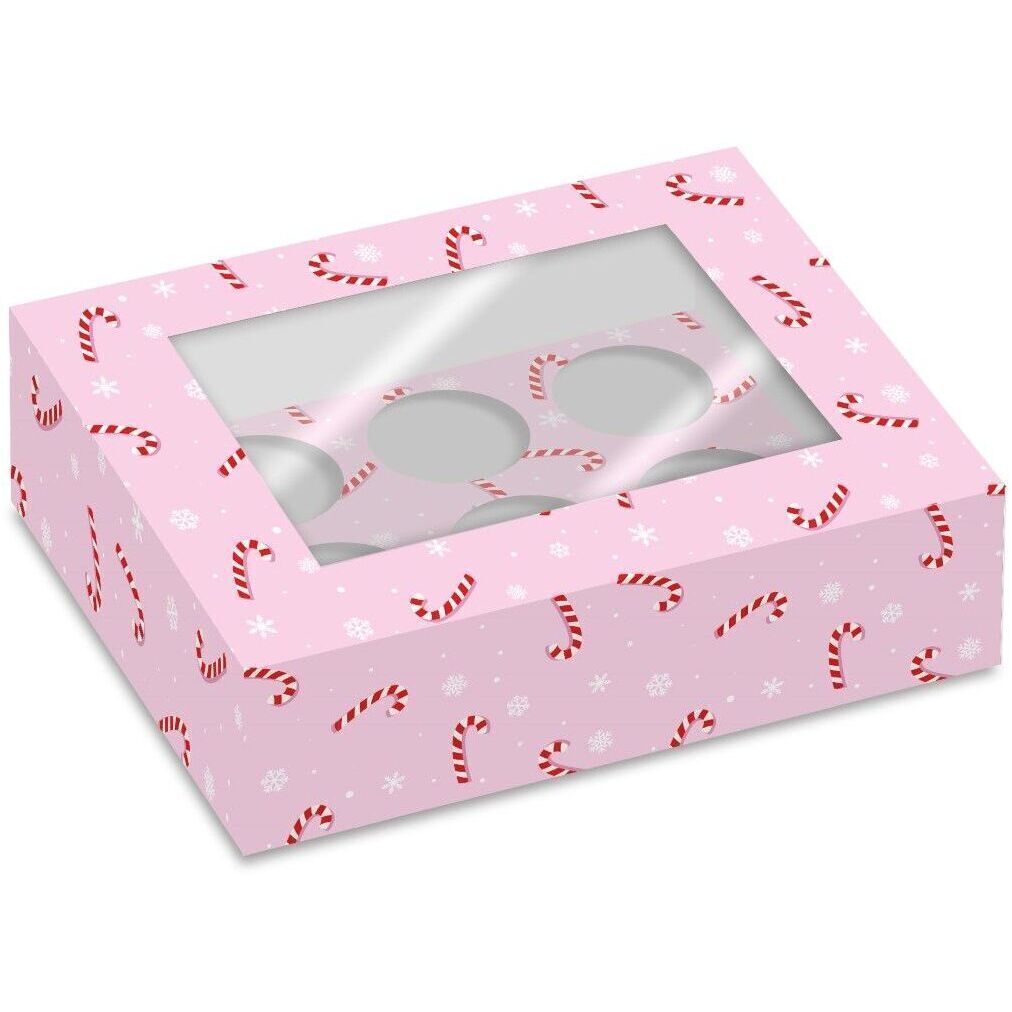 Boîte pour 6 cupcakes à motif de canne en bonbon - 2 unités