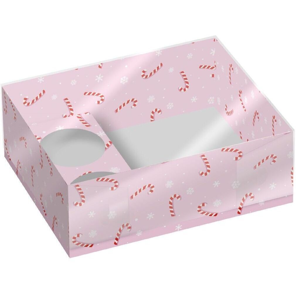 Boîte de 26 x 20 x 9 cm pour cupcakes et friandises en forme de bâton de sucre d'orge - 2 unités