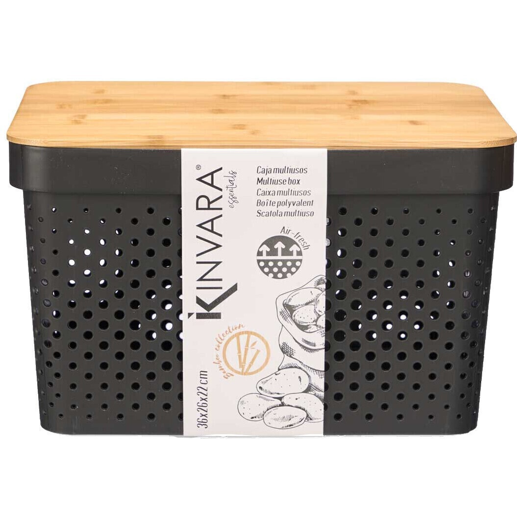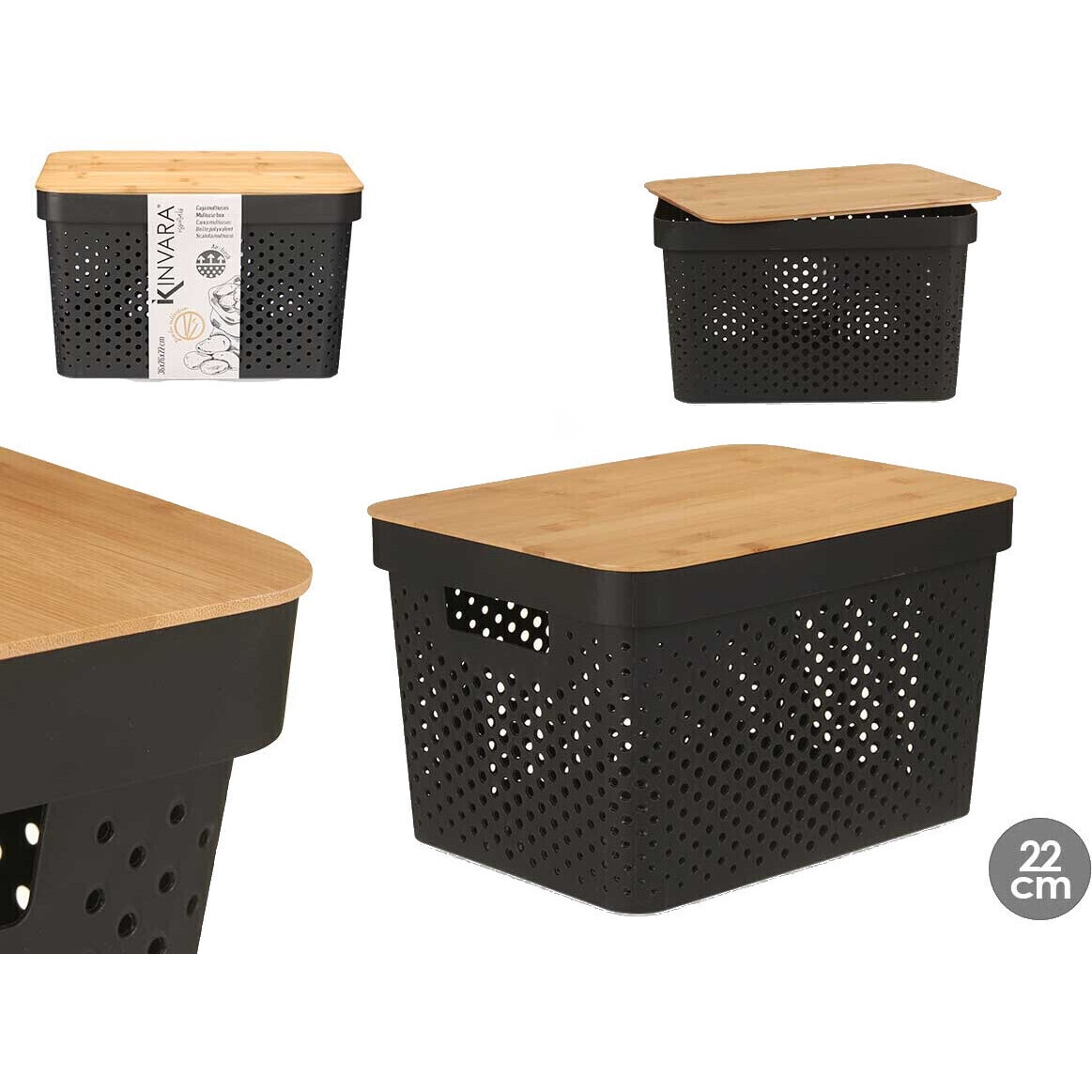 Boîte de 36 x 26 x 22 cm perforée avec couvercle en bambou - 1 unité