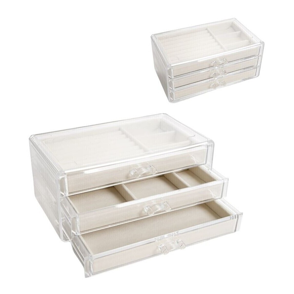 Boîte à bijoux transparente à 3 niveaux de 23,5 x 14 x 11 cm
