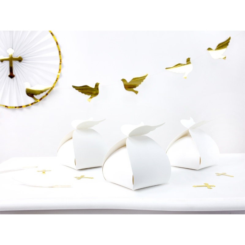 Ce contenant contient dix boîtes en carton, entièrement blanches, que vous pourrez utiliser comme emballage pour des bonbons ou pour offrir un souvenir de cette célébration ou événement spécial.