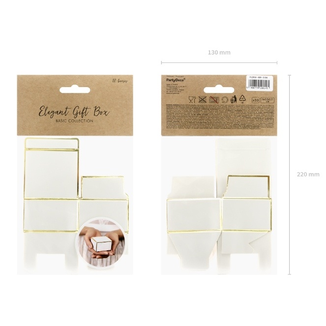 Il s'agit d'un paquet contenant 10 unités de boîtes en carton de couleur blanche avec un bord de couleur or.