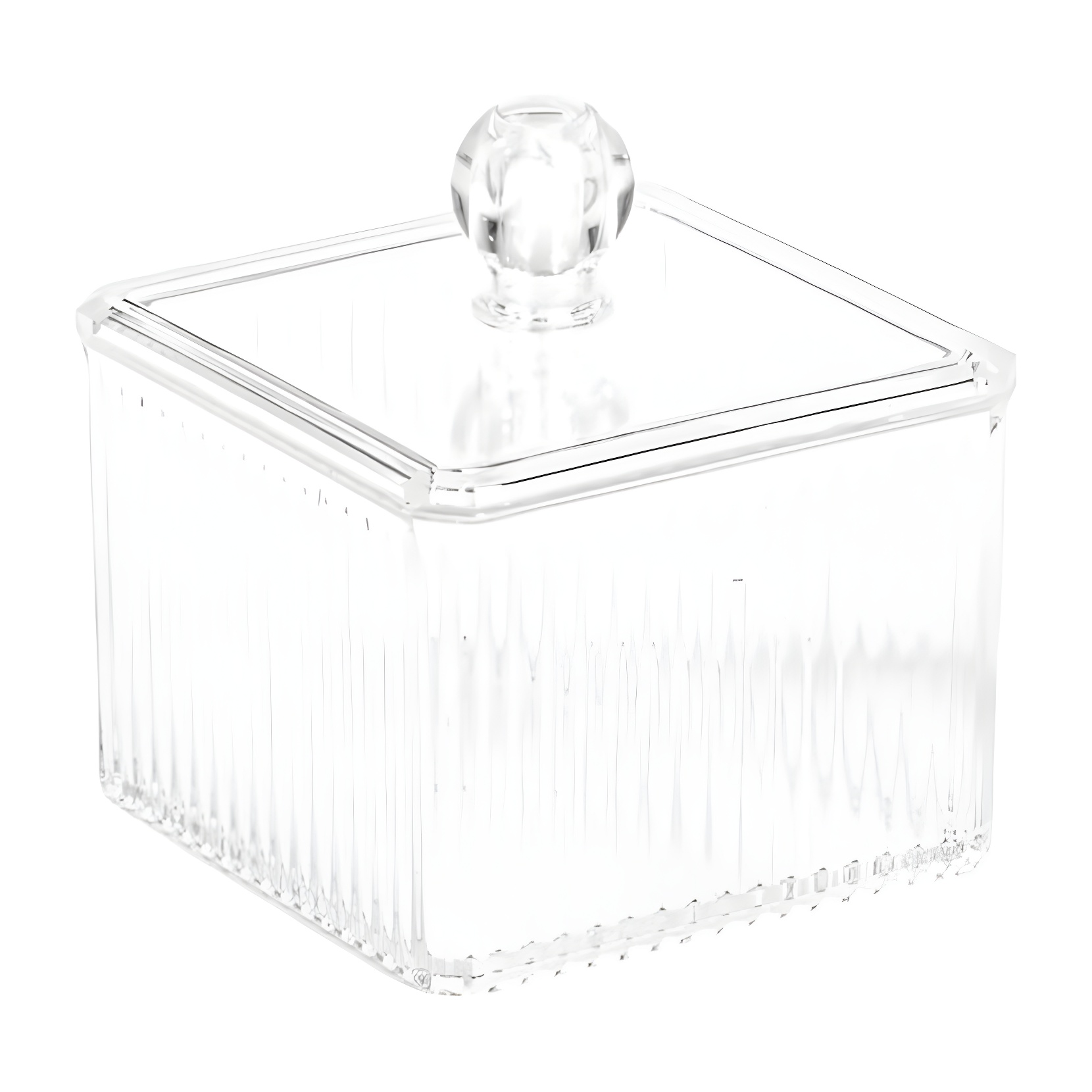 Élégant pot cosmétique au design transparent qui apporte ordre et style à votre meuble de toilette. Sa forme carrée et son couvercle à bouton offrent une finition soignée qui se marie aux décors modernes comme classiques.