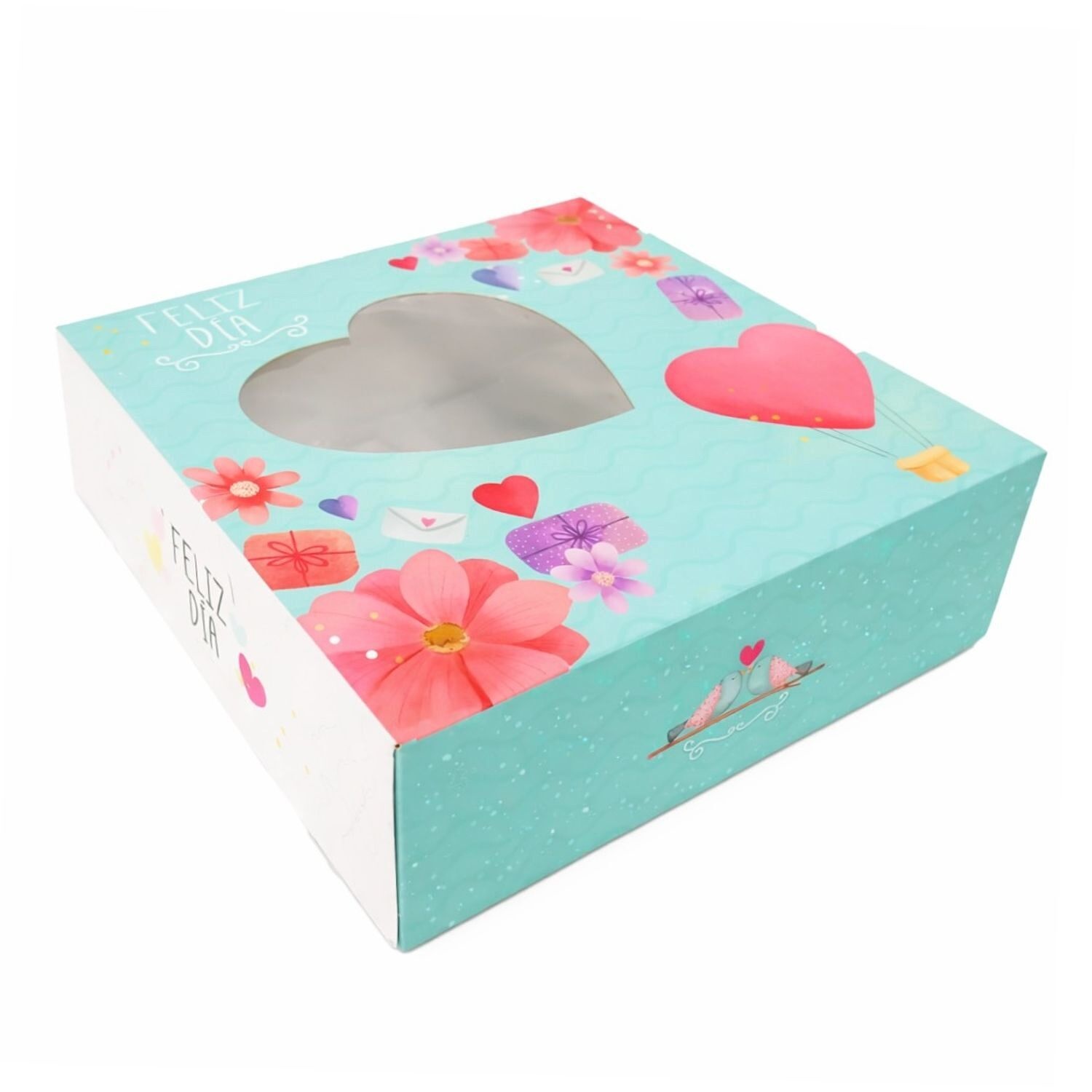 Boîte de 23 x 23 x 8 cm pour gâteau décorée de coeurs de la Saint-Valentin