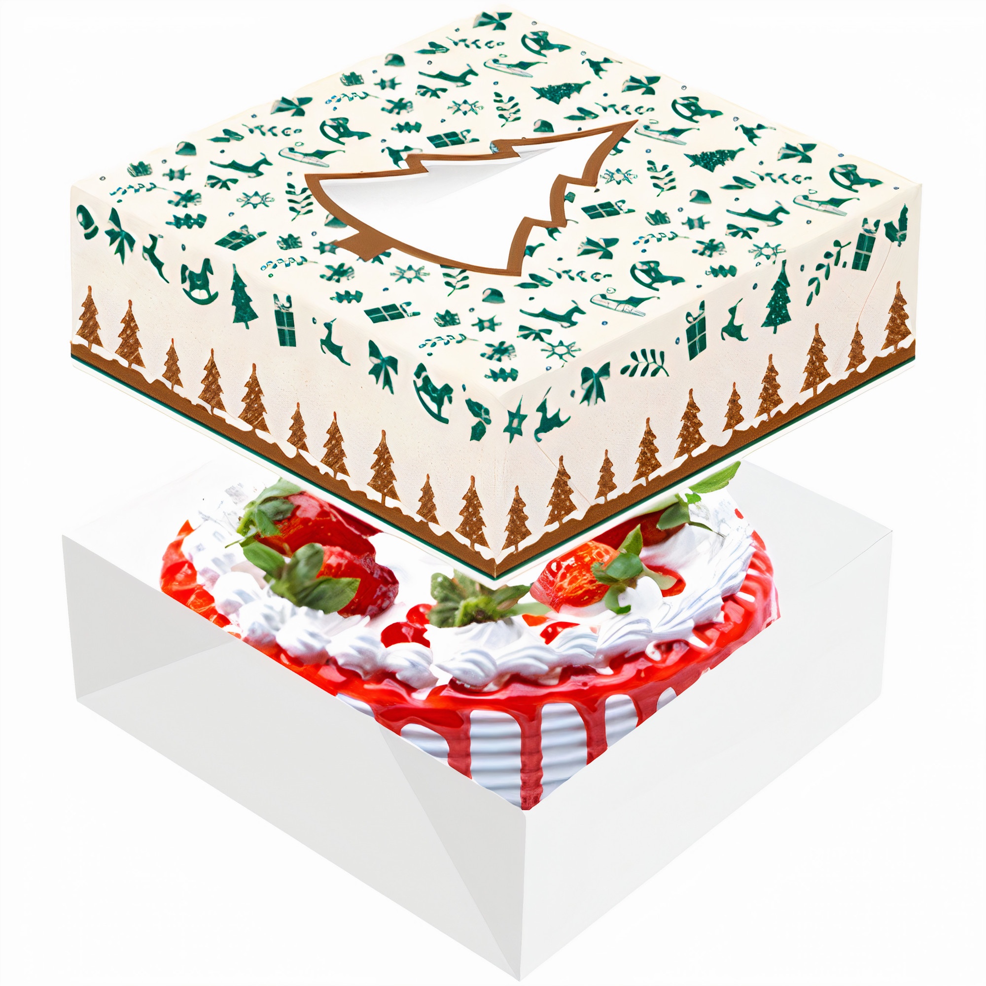 Boîte pour galette des Rois de 24 x 24 x 7,5 cm avec arbre de Noël