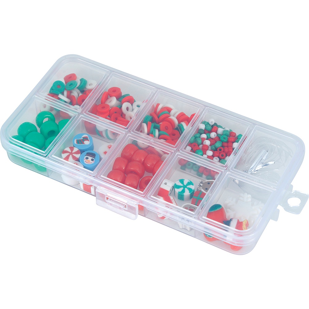 • Boîte contenant des perles pour fabriquer des bracelets.