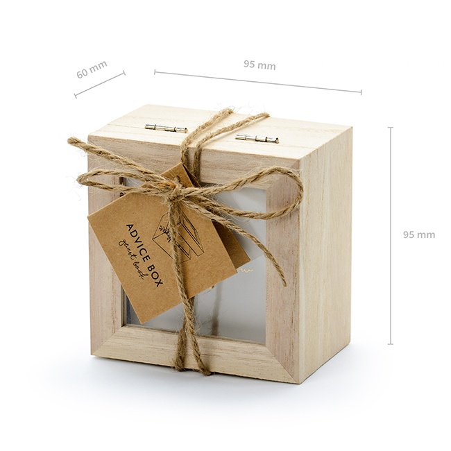 Ce produit se compose d'une magnifique boîte en bois de style minimaliste, dotée d'une fermeture magnétique. Il inclut 110 cartes avec une phrase en anglais où vos invités pourront vous dédier quelques mots, que vous pourrez ensuite conserver dans la boîte, au look très décoratif.
