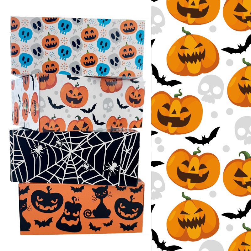 Boîte pour sucreries de citrouilles et chauves-souris de 18 x 13,5 x 7,5 cm - Decora
