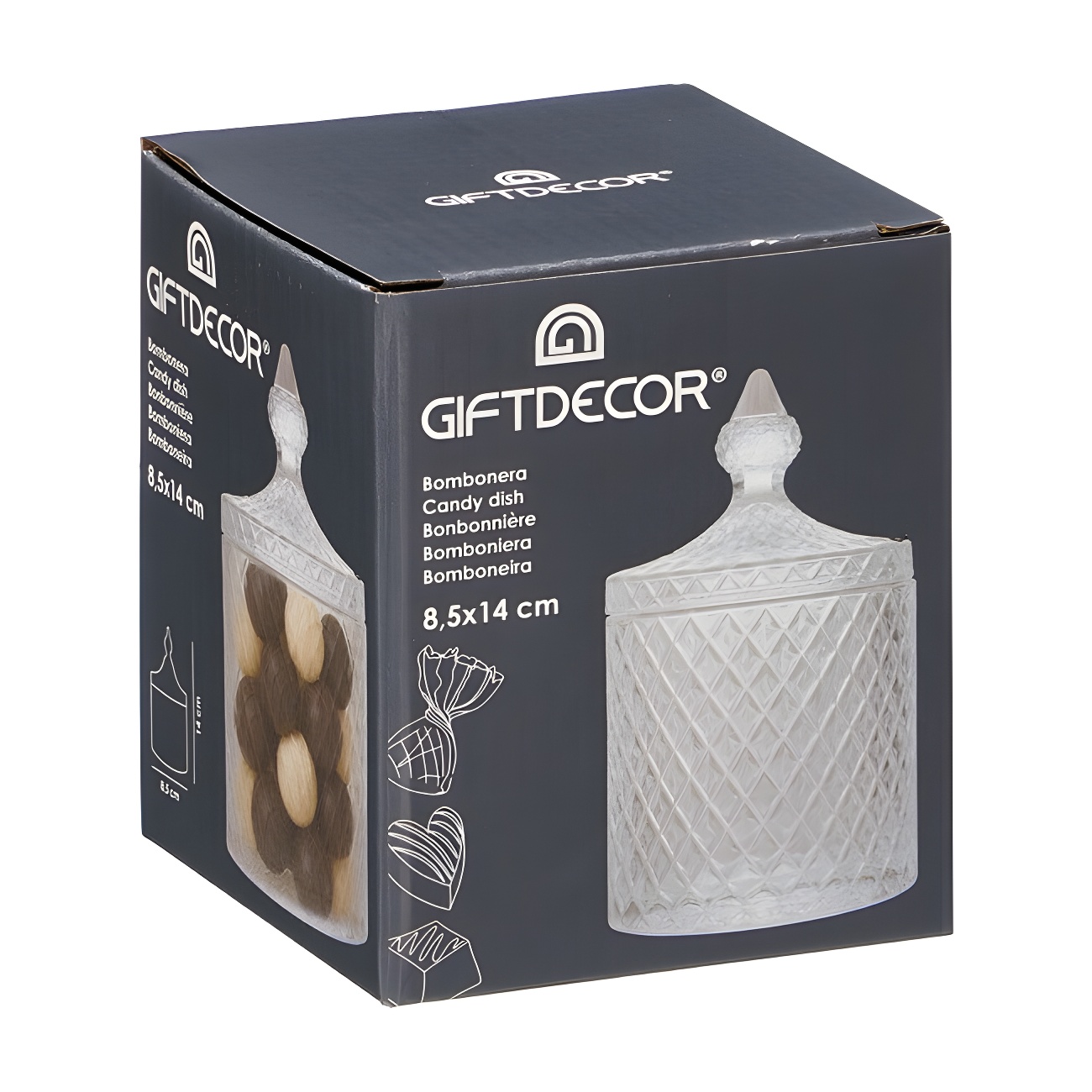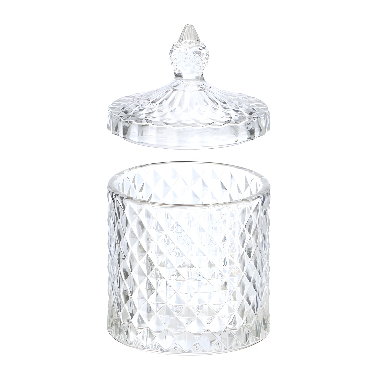 Bonbonnière transparente à motifs de losanges de 14 x 8,5 x 8,5 cm