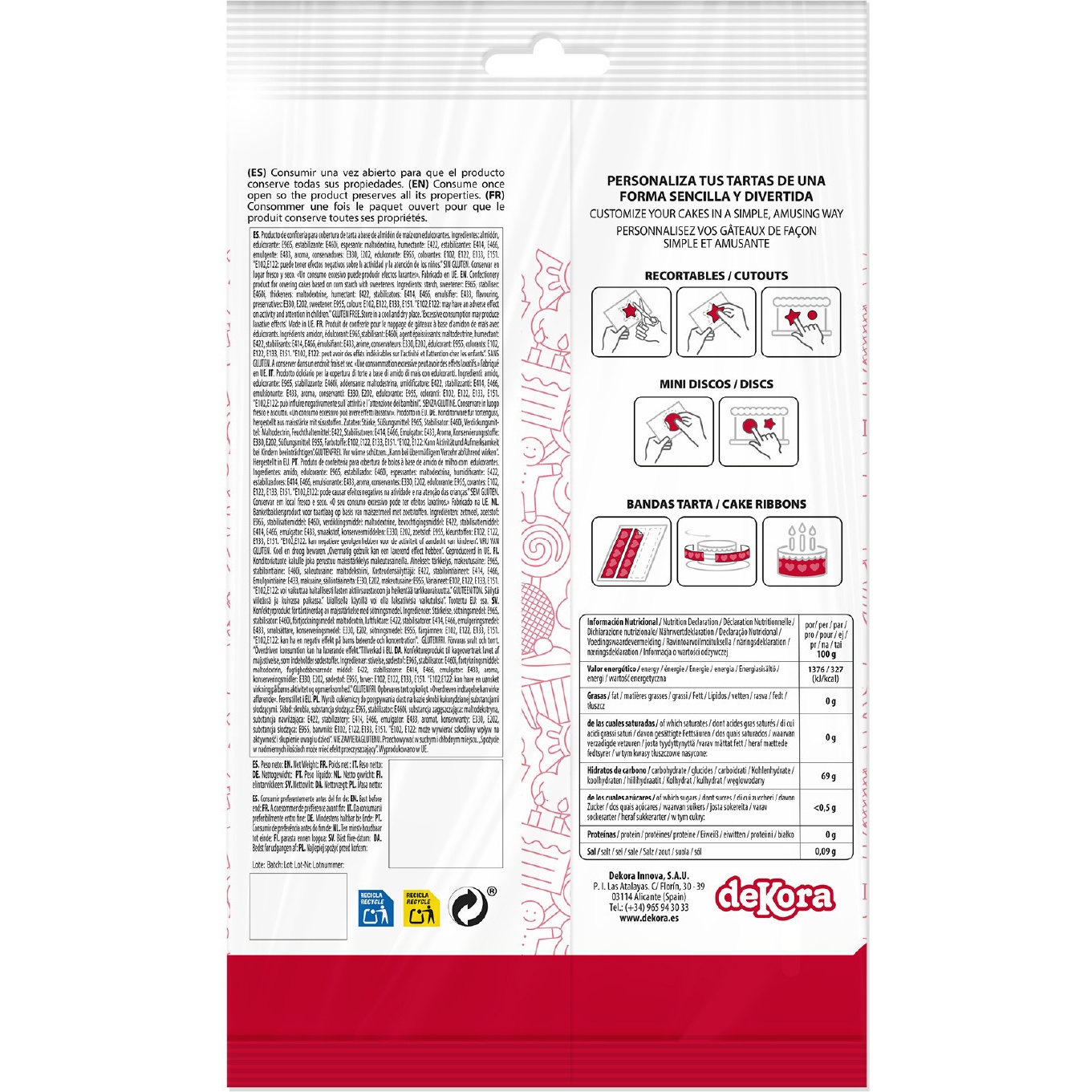 Ingrédients: amidon, édulcorant: E965, stabilisant: E406i, épaississant: maltodextrine, humectant: E422, stabilisants: E414, E466, émulsifiant: E433, arôme, conservateurs: E330, E202, édulcorant: E955, colorants: E102, E122, E133, E151. E102 et E122 peuvent avoir des effets indésirables sur l'activité et l'attention des enfants.