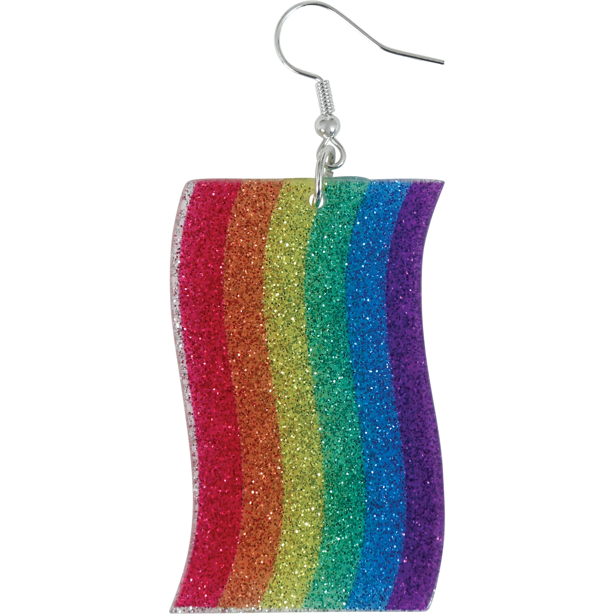 Boucles d'oreilles originales aux rayures arc?en?ciel et finition pailletée brillante. Leur silhouette ondulée crée du mouvement et ajoute une touche gaie à n'importe quelle tenue de soirée. Légères et confortables, elles sont pensées pour être portées des heures durant sans gêne. Le crochet métallique facilite leur mise en place et garantit une tenue stable.