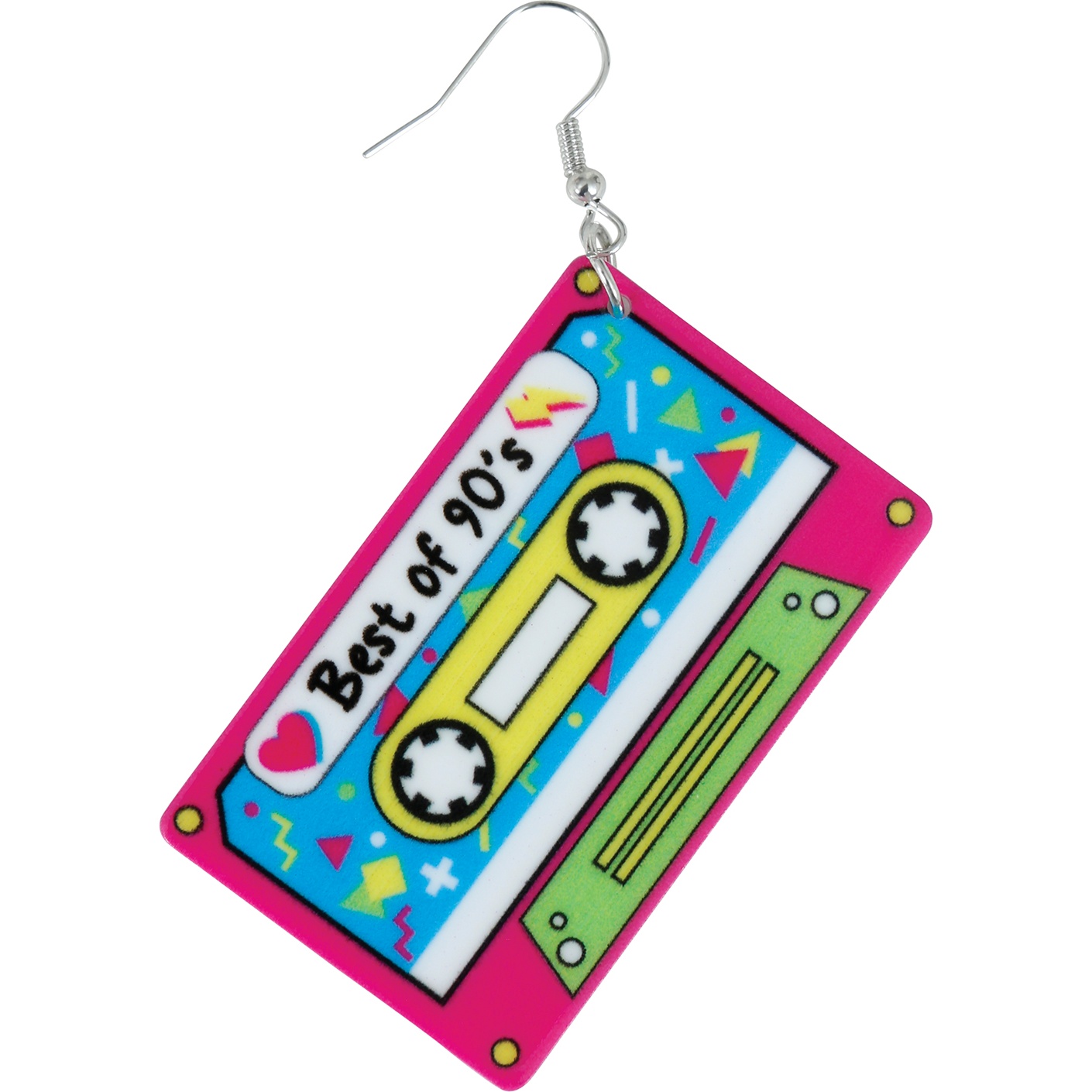 Boucles d'oreilles en forme de cassette, inspirées de l'esthétique pop des années 90. Leurs couleurs vives et leurs détails recréent l'aspect d'une cassette classique pour un rendu vintage et amusant. Confectionnées en métal et PVC, elles sont légères et confortables à porter. Fermoir à crochet facile à enfiler - un design accrocheur qui sublime instantanément vos tenues.