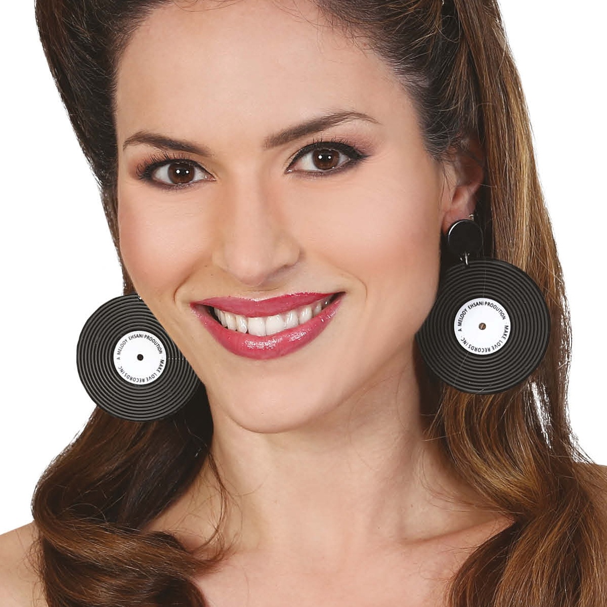 Formidables boucles d'oreilles en vinyle de couleur noire qui vous permettront de compléter vos meilleurs déguisements.